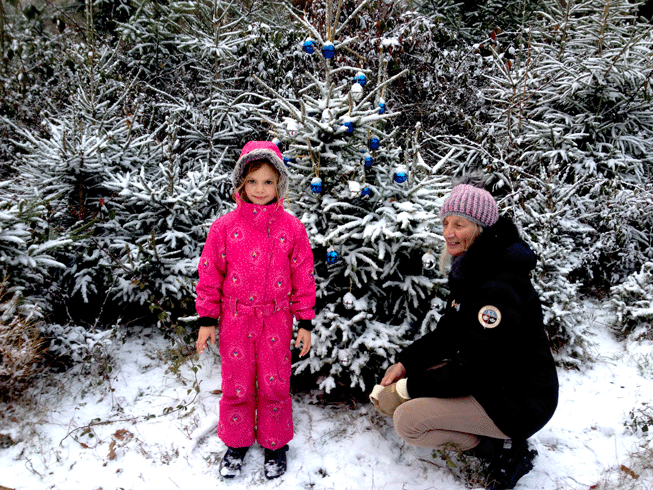 Juli und Karin Bohne besuchten das Bäumchen beim ersten, vorweihnachtlichen Schnee. Leider konnte der Nikolaus nicht gesehen werden. Allerdings hatte er kurz vorher seine großen Fußstapfen hinterlassen.