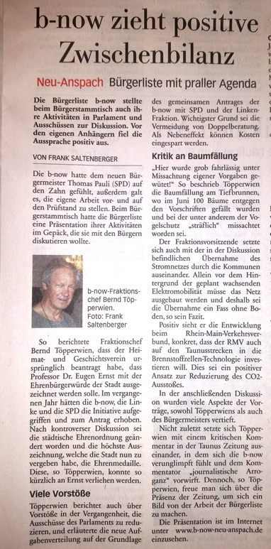 Seit der konstituierenden Sitzung am 19.April, sind wir, die Bürgerliste neue offene Wählergemeinschaft ( b-now), im Stadtparlament von Neu-Anspach angekommen.
