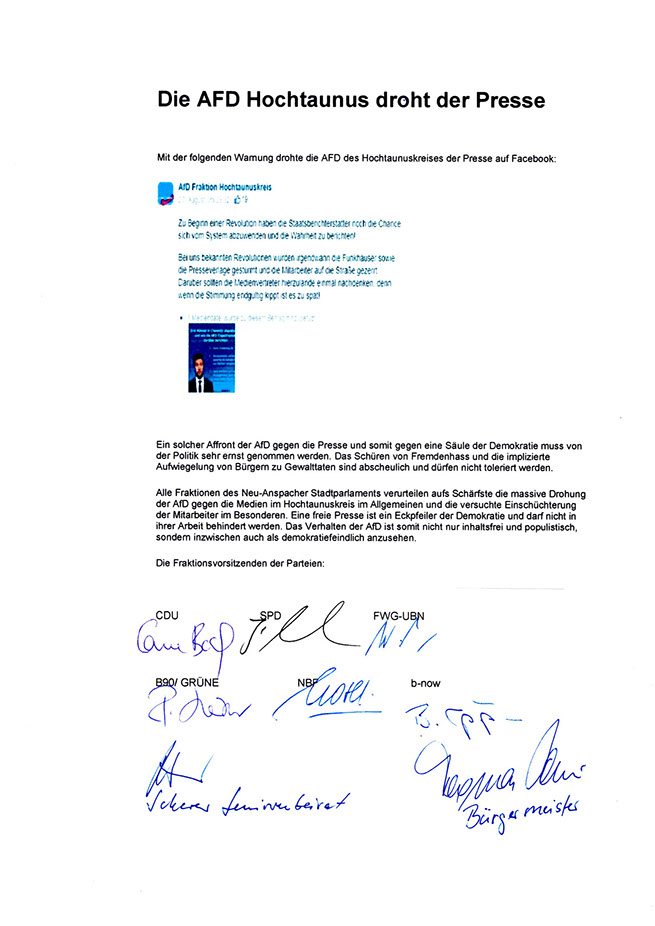 Presseinformation der Bürgerliste neue offene Wählergemeinschaft Neu-Anspach