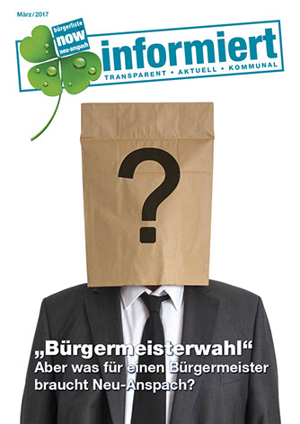 Im März 2017 wählt Neu-Anspach einen neuen Bürgermeister. Nachdem die erst im September 2015 gegründete Bürgerliste b-now in den vergangenen Monaten nachhaltig auf das politische Geschehen in Neu-Anspach Einfluss nehmen konnte - 27%-Erfolg bei der Kommunalwahl, Akteneinsichtsausschuss zum Windkraftvertrag, erfolgreicher Bürgerentscheid - galt es nun realistisch die Chancen für einen eigenen Kandidaten abzuwägen. Erwartete über 50 Millionen Euro Schulden bis Ende 2017 sind die größte Herausforderung vor der Neu-Anspach je stand. In schweren Zeiten geht es für den zukünftigen Bürgermeister nicht nur um persönliche Integrität und Kommunikationsfähigkeit, sondern um Sachkenntnis und Erfahrung in der kommunalen Haushaltsführung. Als neue politische Kraft kann die b-now den unbedingt notwendigen kommunalpolitischen Hintergrund noch nicht vollumfänglich  in die Waagschale werfen. Es wäre daher vermessen, einen eigenen Kandidaten für das Amt des Bürgermeisters ins Rennen zu schicken, zumal dessen Stand  sehr schwer wäre.