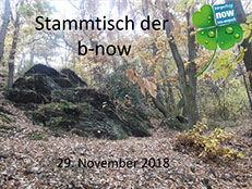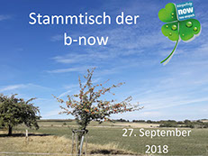 Auf dem September-Stammtisch der b-now hatten unsere Gäste Gelegenheit, den neuen Förster, Herrn Christoph Waehlert begrüßen zu können. Herr Waehlert stellte sich und seinen bisherigen beruflichen Werdegang vor und schilderte den ca. 40 anwesenden Gästen - unter ihnen Bürgermeister Pauli, Andreas Moses, Kevin Kulp und André Sommer - die schlimme Situation unseres Waldes nach nun zwei trockenheißen Sommern. Diverse Fragen aus dem Publikum beantwortete Herr Waehlert im Anschluss umgehend und kompetent.