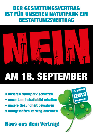 Nach langen Bemühungen der b-now um Transparenz und nach einem offenen Brief an Bürgermeister Hoffmann wurde am Freitag der bisher als geheim bezeichnete Gestattungsvertrag endlich veröffentlicht.  Warum erst jetzt? Eine erste Erklärung findet sich auf dem Deckblatt, wo nun für jeden nachzulesen ist, dass nicht die vom Parlament legitimierte Bietergemeinschaft aus Süwag und juwi Vertragspartner ist, sondern, wie Herr Stein von juwi am 2.9. sagte, eine "leere Hülle" (Neu-Anspach Wind GmbH & Co KG). Jetzt haben alle Bürger selbst die Möglichkeit, sich von den offensichtlichen Schwächen und Risiken dieses Vertragswerkes zu überzeugen. Da es nicht einfach ist, alle versteckten Fallstricke im Vertrag zu identifizieren, werden wir diese in den kommenden Tagen erläutern, um Ihnen eine Fakten gestützte Entscheidung am 18.9. zu erleichtern.